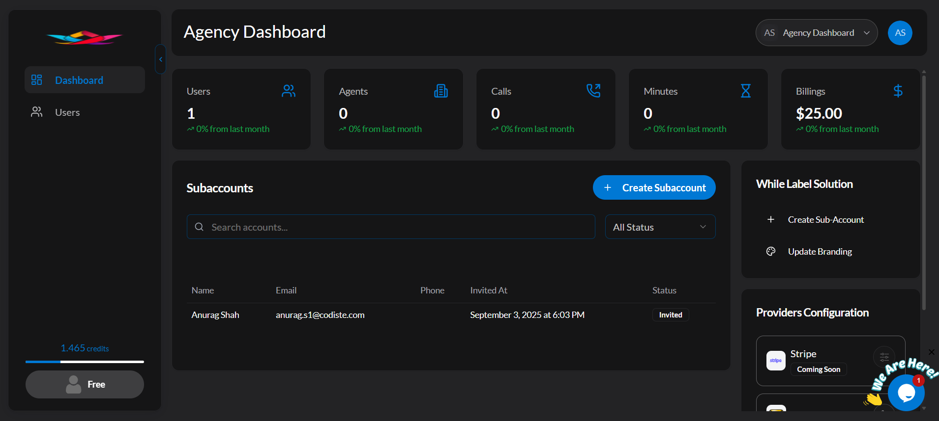 You’re all set! With branding, email, and sub-accounts configured, your Dialora Agency Portal is ready to run as your own white-label platform.