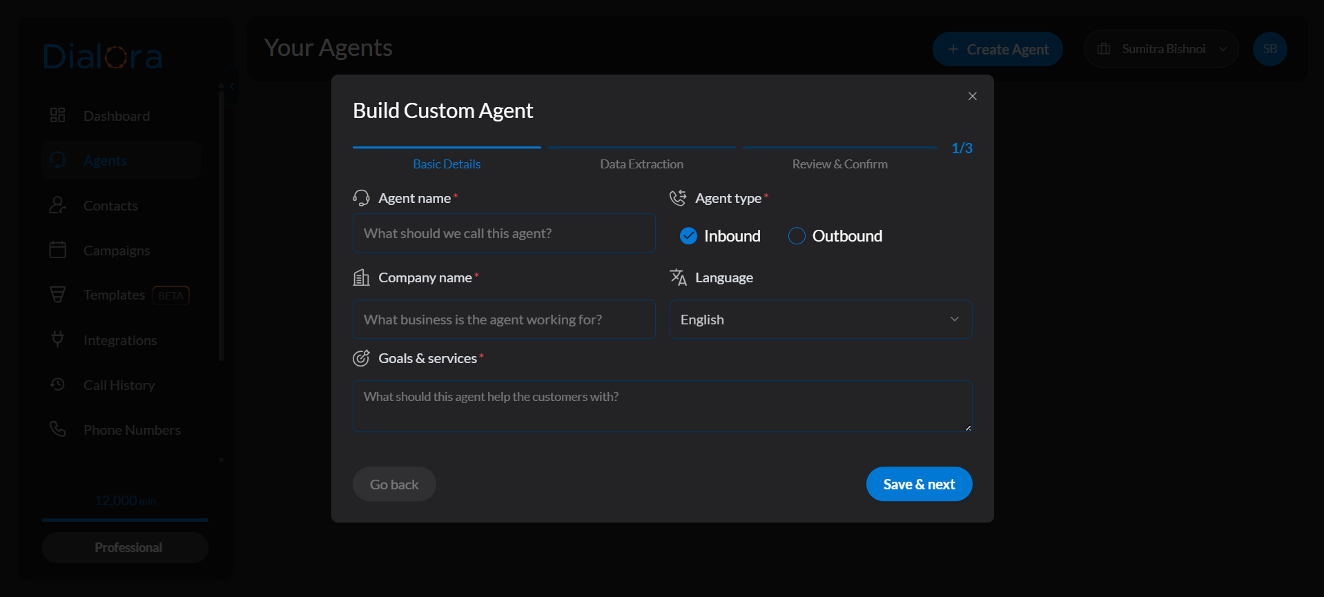 - Give your agent a name, e.g., “KD Dental Clinic”