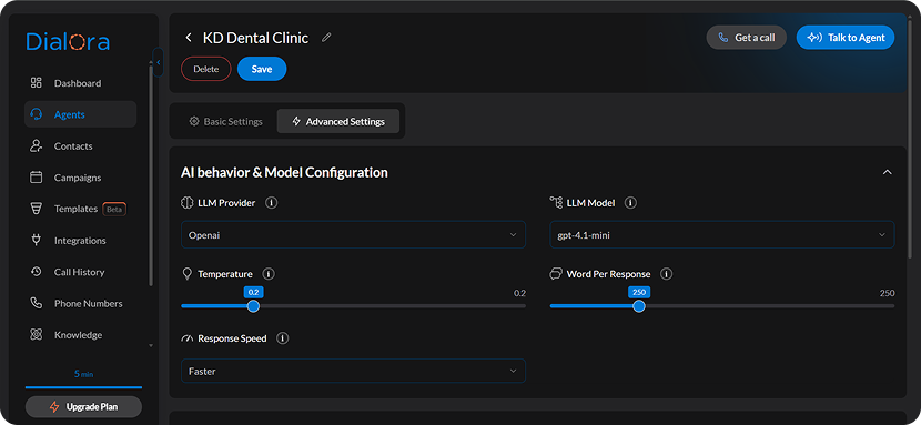 Before you launch your AI voice agent, it’s essential to configure the basic settings to match your brand’s tone, language, and communication style. Here’s how to get started: