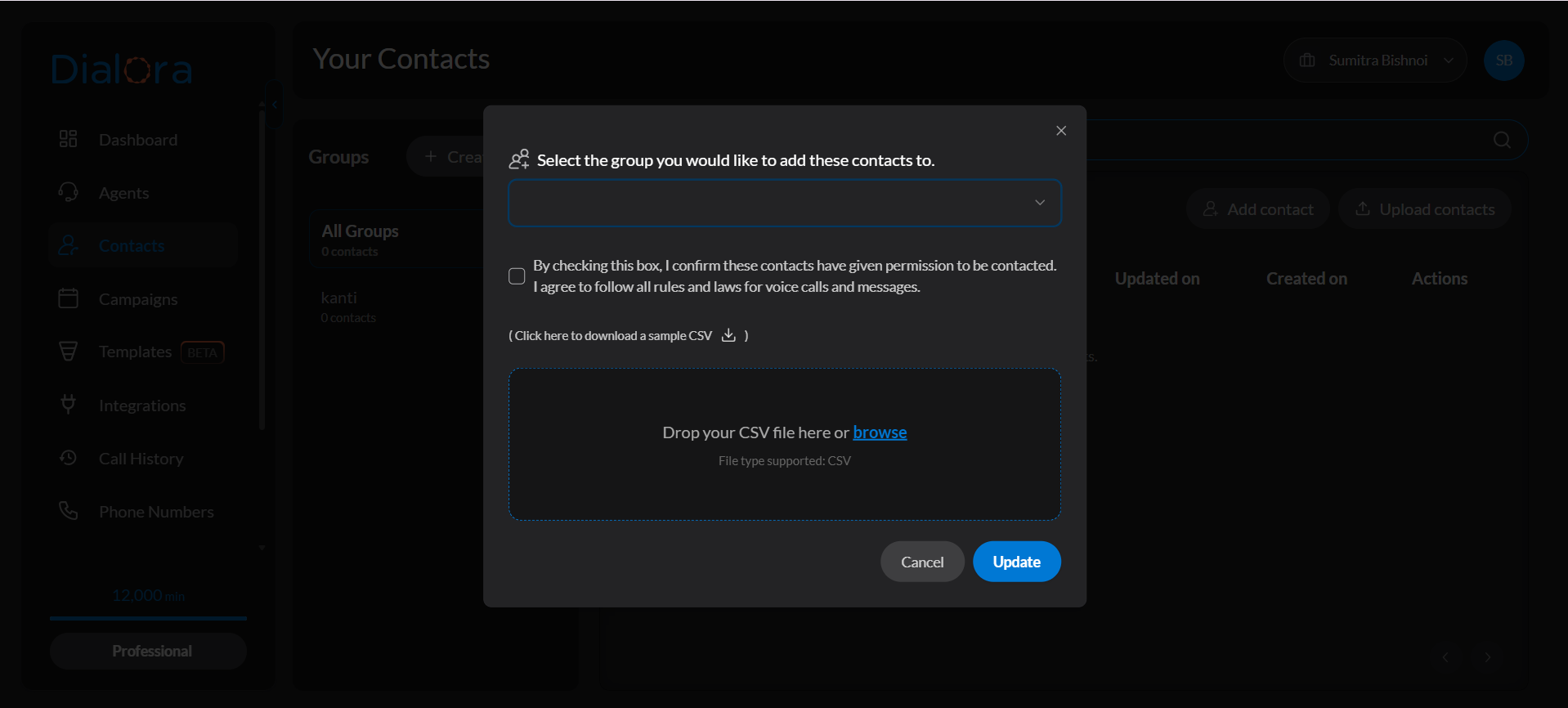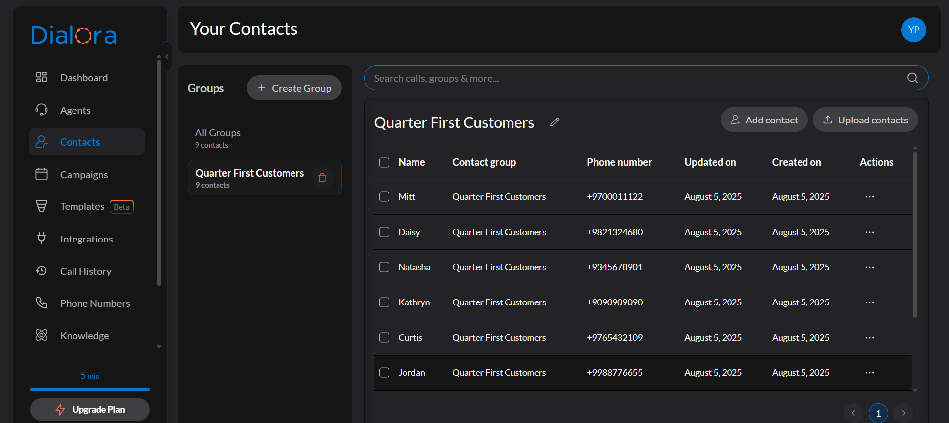 Uploading your contacts to Dialora is quick, but you need to follow a specific format to ensure everything works smoothly.