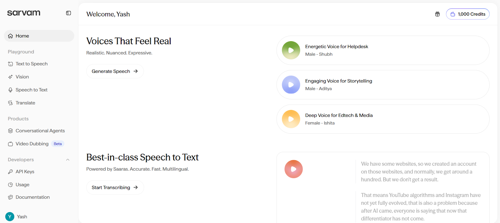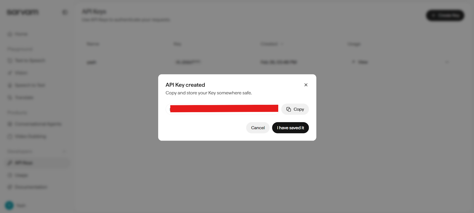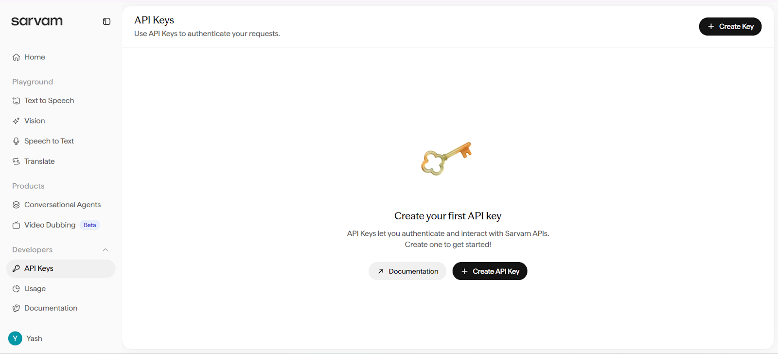 - Log in to your Sarvam AI account.